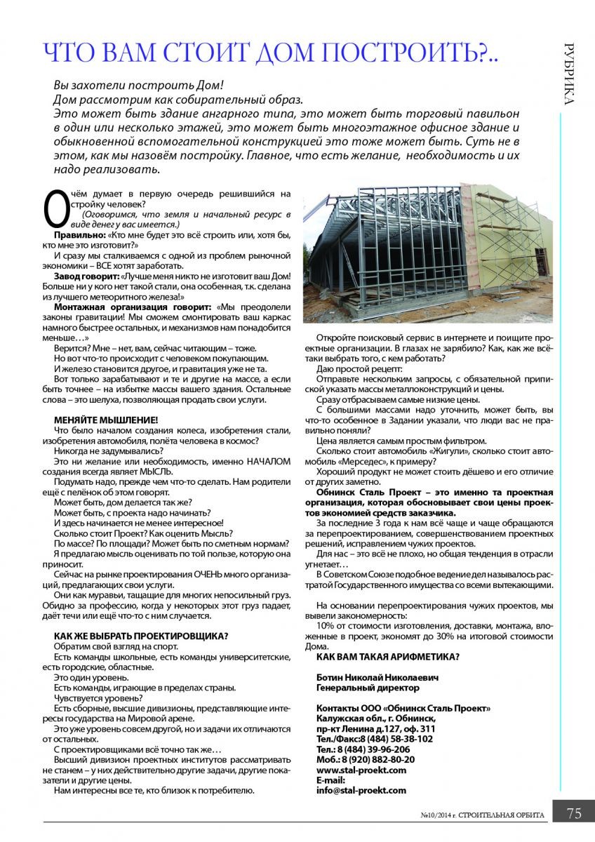 Вы захотели построить Дом! Дом рассмотрим как собирательный образ. Это может быть здание ангарного типа, это может быть торговый павильон в один или несколько этажей, это может быть многоэтажное офисное здание и обыкновенной вспомогательной конструкцией это тоже может быть. Суть не в этом, как мы назовём постройку. Главное, что есть желание, необходимость и их надо реализовать.