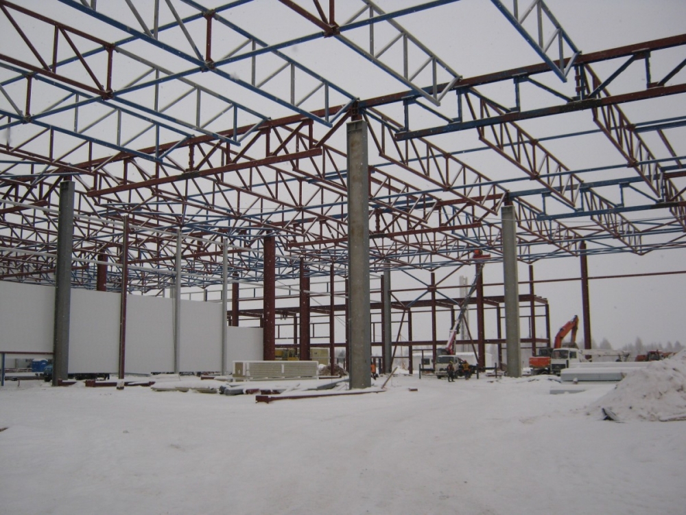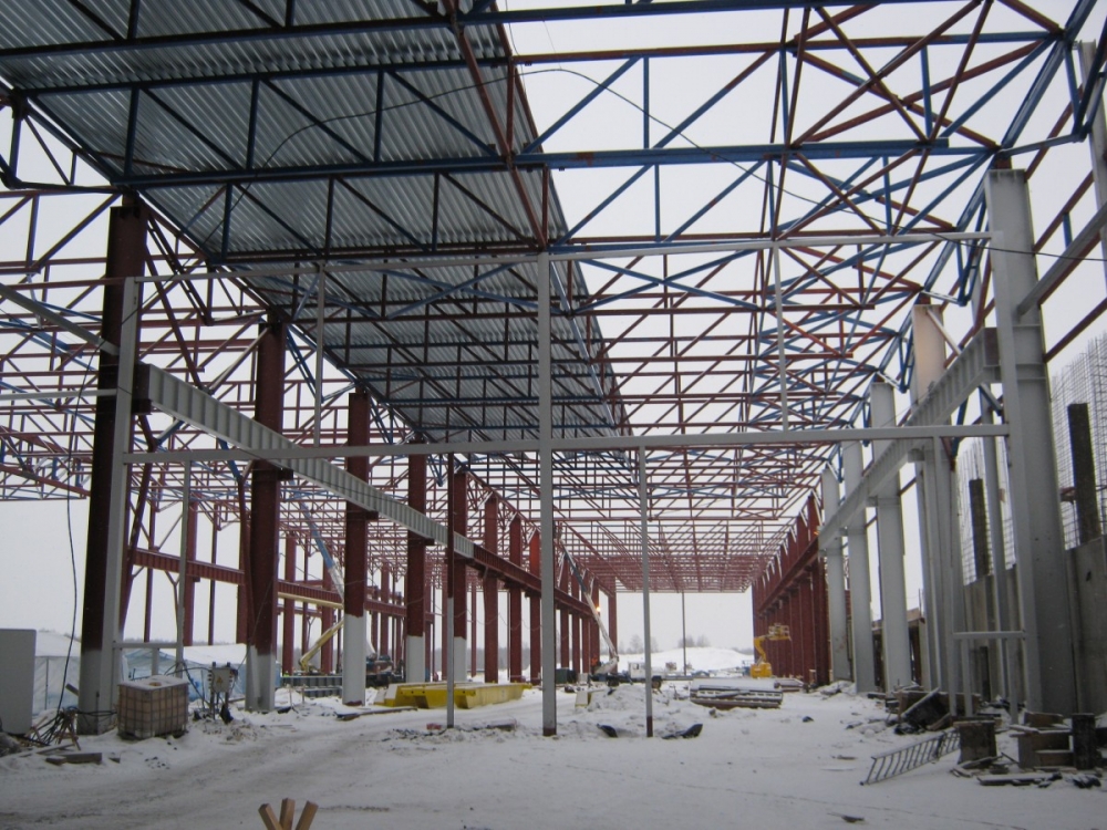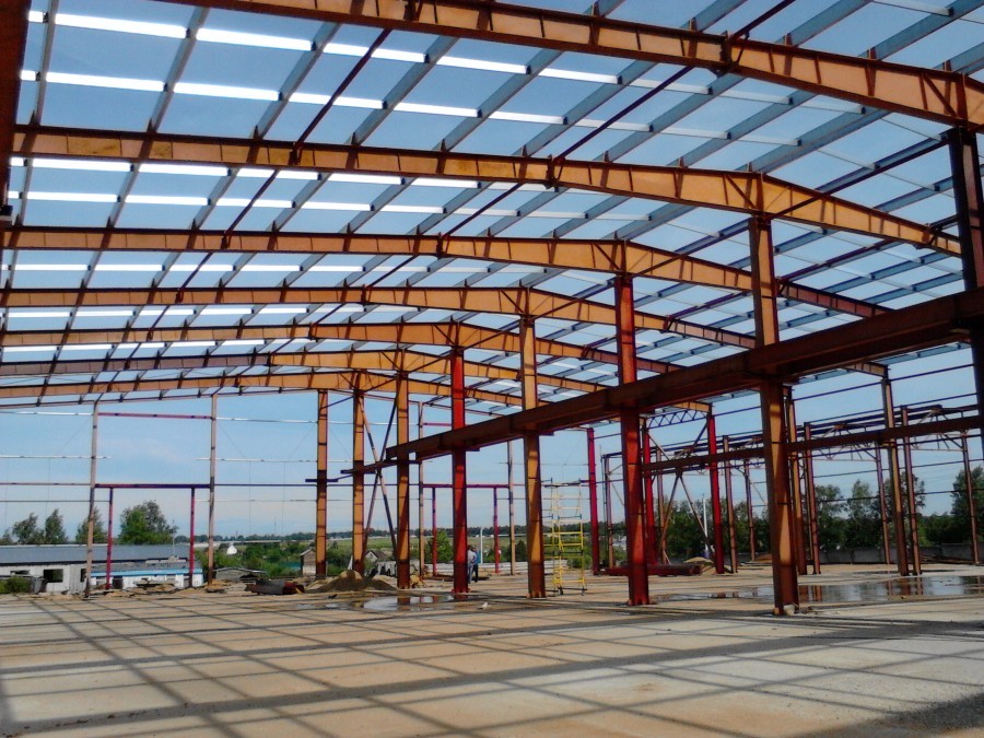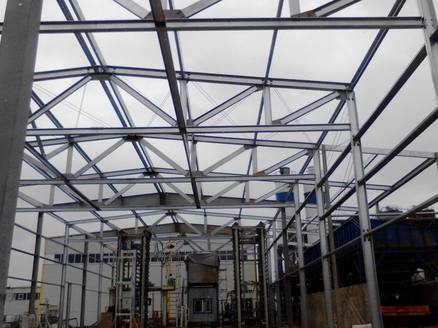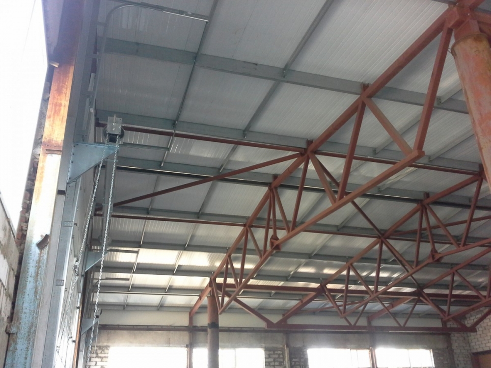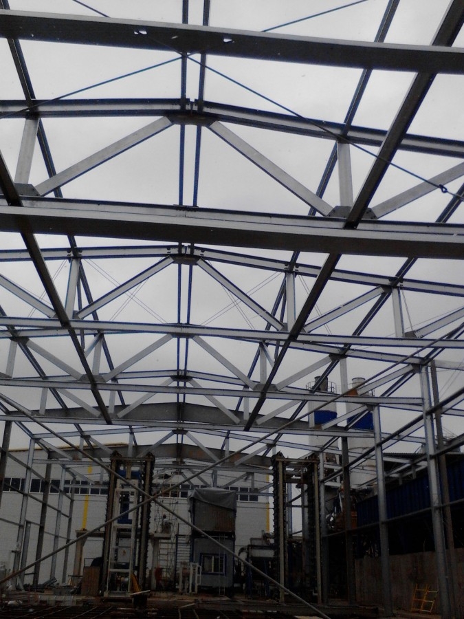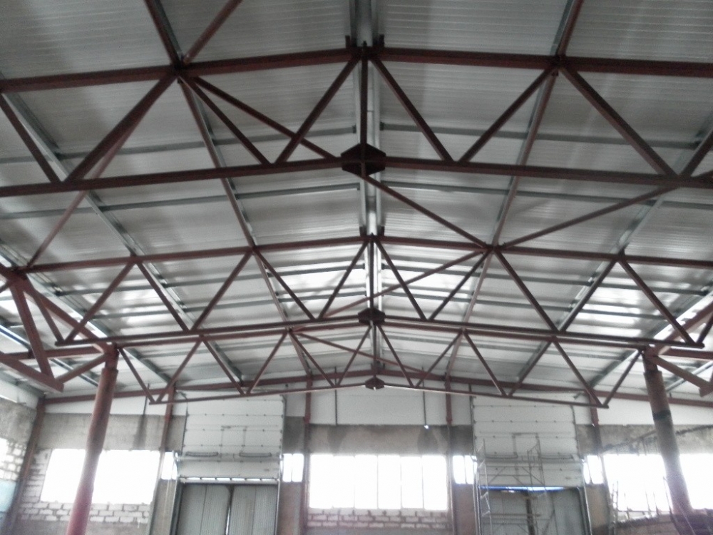 Гармоничное сочетание ферменных конструкций и балок переменного сечения позволяет даже в конструкциях для самых тяжёлых производств достигать легкости, изящества и экономии материалов. Фермы могут выполняться как из черного металла, так и из оцинкованного гнутого профиля.