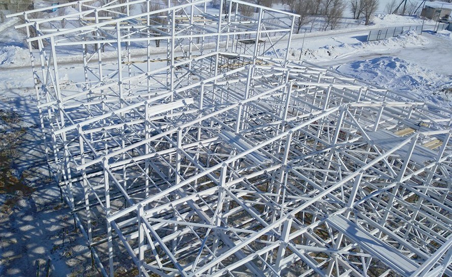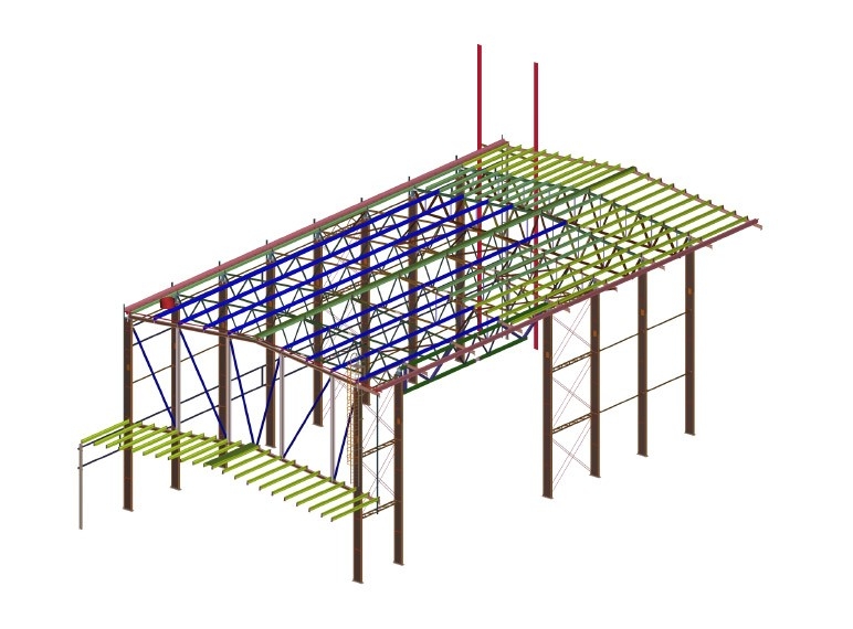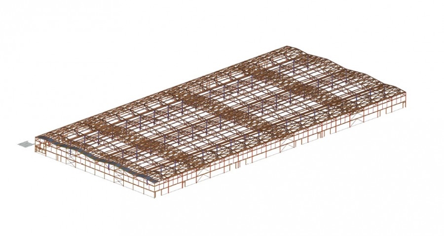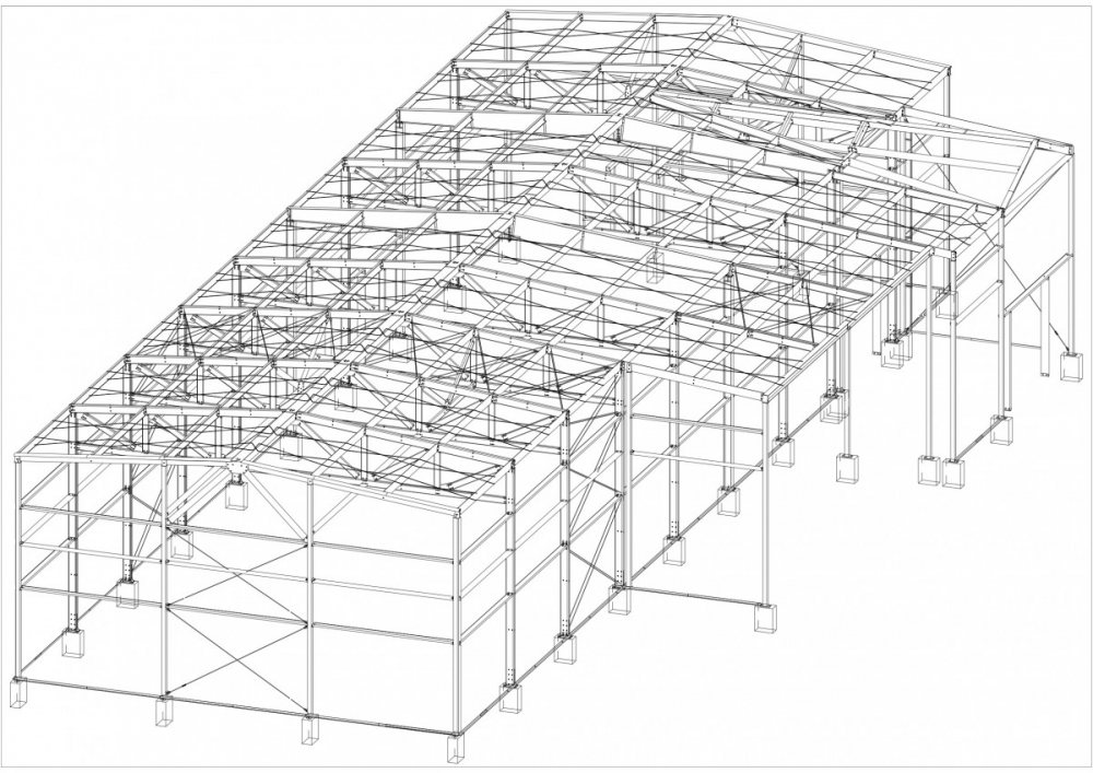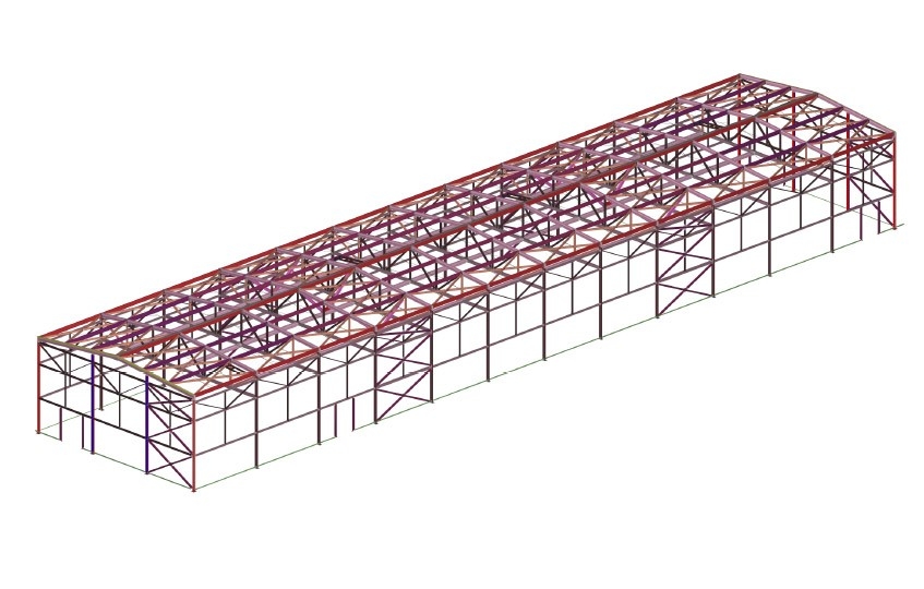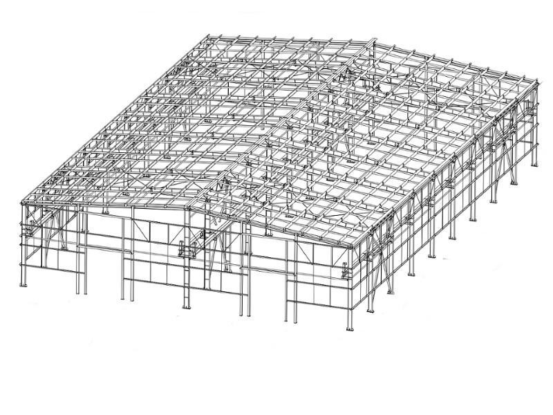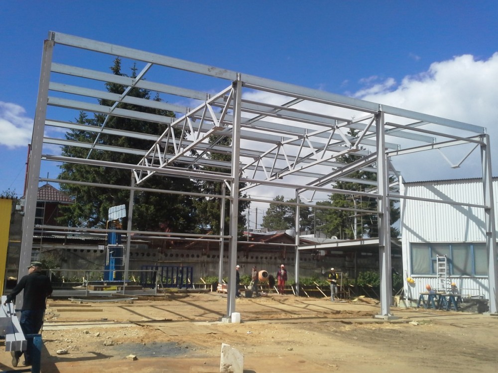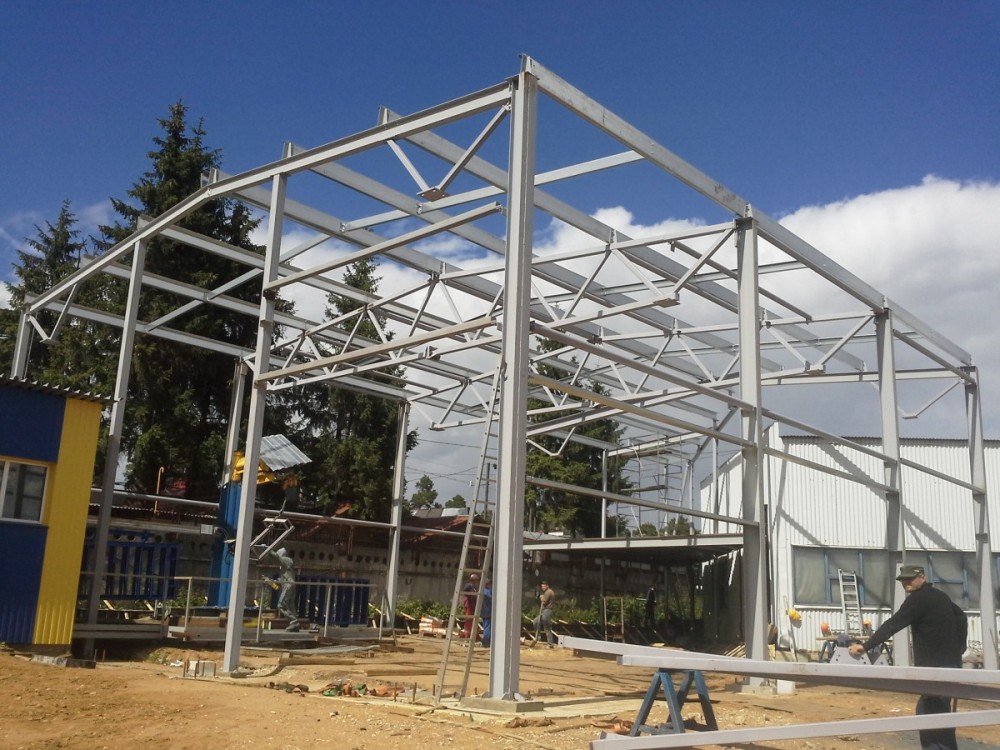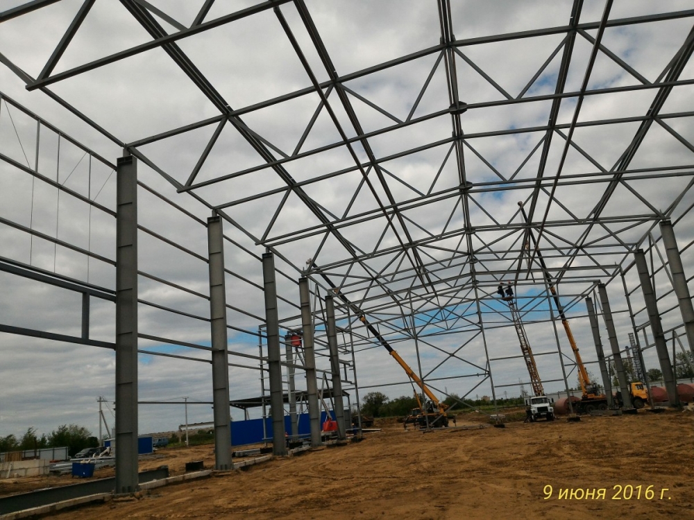 Гармоничное сочетание ферменных конструкций и балок переменного сечения позволяет даже в конструкциях для самых тяжёлых производств достигать легкости, изящества и экономии материалов. Фермы могут выполняться как из черного металла, так и из оцинкованного гнутого профиля.