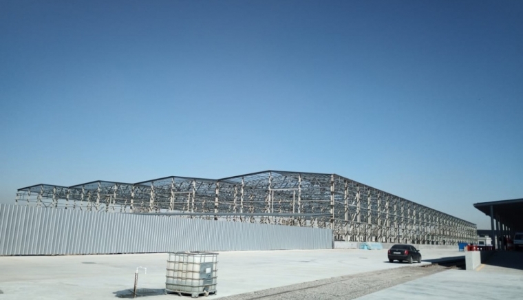 Проект производственно-складского комплекса с многопролетной схемой каркаса в сейсмически активном регионе (Ташкентская область, Узбекистан) общей площадью 17000 кв.м.