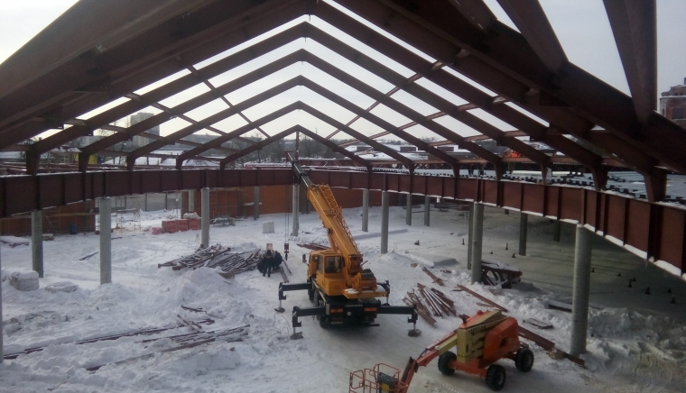 В первой половине июля этого года были завершены строительно-монтажные работы по сборке двухпролётного металлокаркаса в городе Орел.