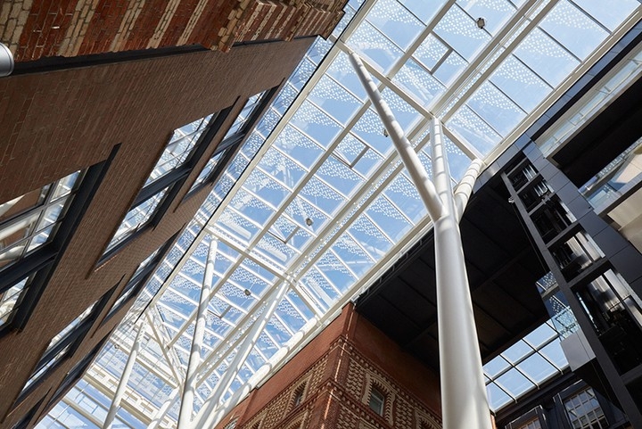 Проходит последние согласования проект Атриума для объекта "Ремонт и приспособление фабрики "Большевик" в офисный центр класса "А". Проектирование ведётся по архитектурному замыслу английской компании "Buro Happold". От предварительной оценки масса снижена с 330 тонн до 152.