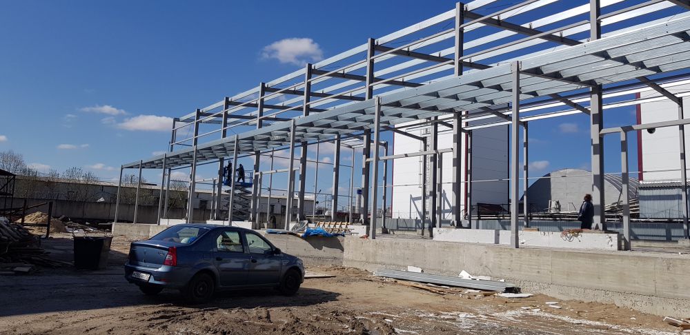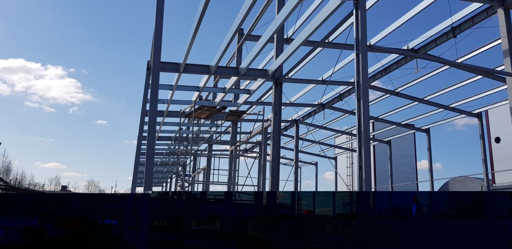 В начале мая в Щербинке (городской округ Москвы) завершилось возведение металлокаркаса складского помещения габаритами 21,7х53,4х9,6 м. Проектирование и поставка металлоконструкций осуществлялась специалистами ООО «Обнинск Сталь Проект». Построенный металлокаркас является комбинированным. Сочетание чёрного металла и ЛСТК на сегодняшний день является самой современной схемой конструктива. В настоящий момент осуществляется установка ограждающих конструкций.