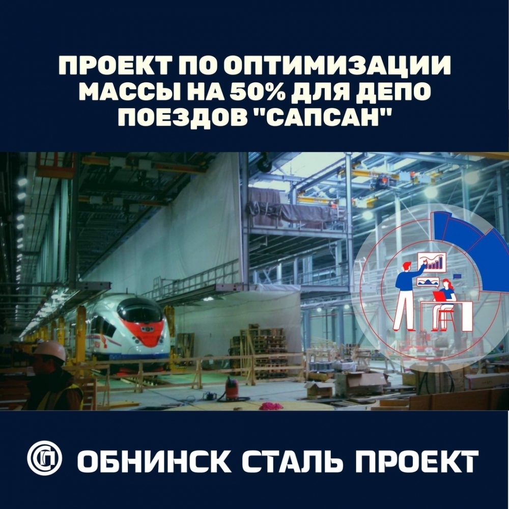 Основным конкурентным преимуществом «Обнинск Сталь Проект» является высокая экономическая эффективность предлагаемых проектных решений. Один из ярких примеров в нашей практике – проект по оптимизации массы ДЕПО обслуживания поездов «САПСАН» в г.