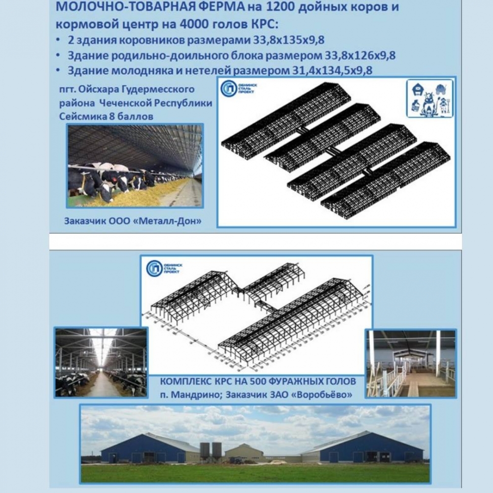 Для сельского хозяйства команда компании Обнинск Сталь Проект работает в следующих направлениях:
