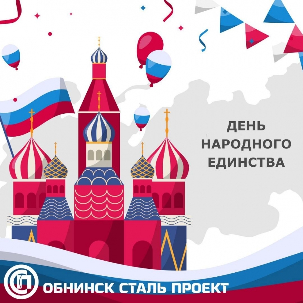 Команда "Обнинск Сталь Проект" поздравляет с Днём народного единства и желает крепкого здоровья, стойкости, реализации поставленных задач, перспективных планов!