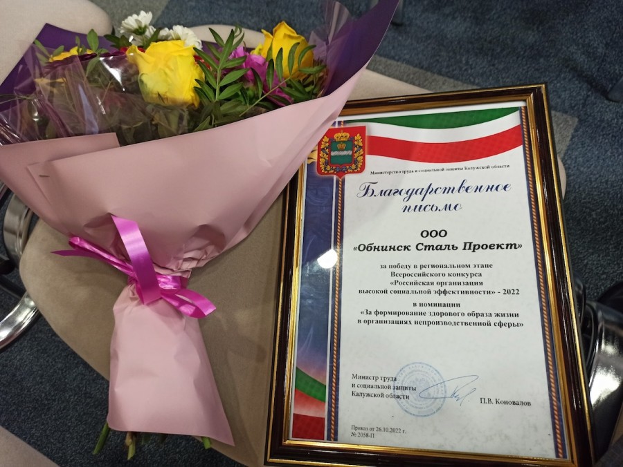 Компании Обнинск Сталь Проект вручили награду за победу в региональном этапе Всероссийского конкурса "Российская организация высокой эффективности" - 2022.