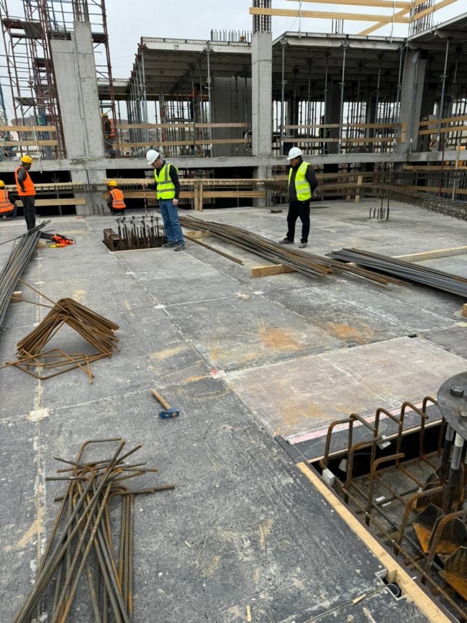 Сегодня воплощается в жизнь проект Атриум, соединяющий несколько строений банка общим внутренним пространством. Сейчас ведется монтаж анкерных блоков, на которые впоследствии будет ставиться несущий каркас.